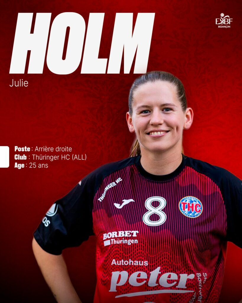 L’Entente Sportive Besançon Féminin (ESBF) est heureuse d’annoncer l’arrivée de Julie Holm au poste d’arrière droite pour la saison prochaine. La joueuse danoise de 25 ans viendra renforcer le collectif bisontin avec sa puissance et son expérience du haut niveau européen.