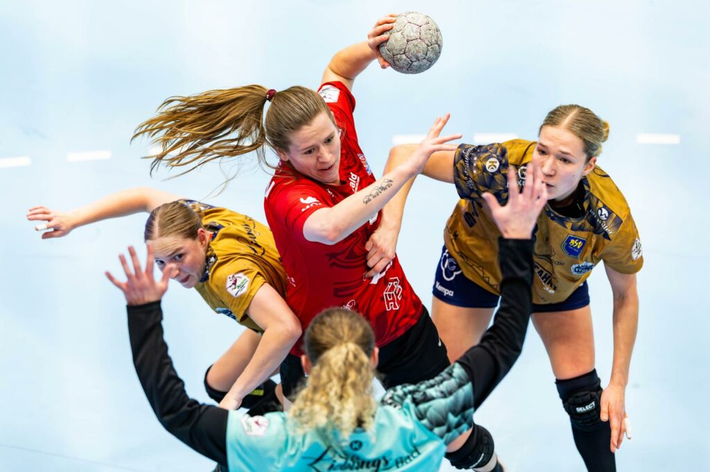 J.H. : Je m’appelle Julie et j’ai 25 ans. J’ai commencé le handball vers l’âge de 11 ans et j’ai signé mon premier contrat à TTH Holstebro (Danemark), où j’ai également passé de nombreuses années en centre de formation. Ensuite, j’ai été prêtée à Ringkøbing, qui évoluait aussi dans le championnat danois, où j’ai eu un rôle important et j’ai vécu une très belle expérience en jouant avec certaines de mes meilleures amies.